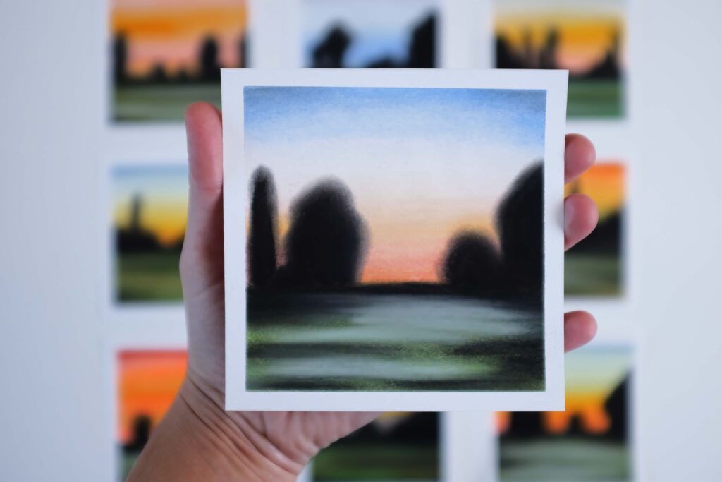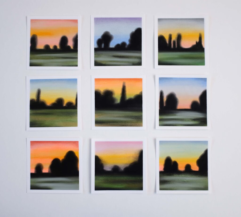 Noctambule, 2025, série de 12 dessins au pastel sec sur papier, 24x32cm – Exposition rien ne presse, Galerie RJ, juin 2025. Crédit : Mathieu Lion